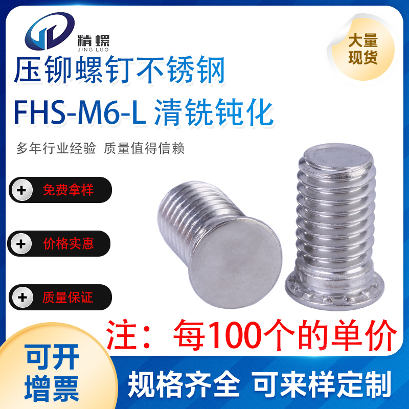 FHSM6不銹鋼鈍化壓鉚螺絲釘SUS304清銑鈍化鐵板壓鉚螺釘配件